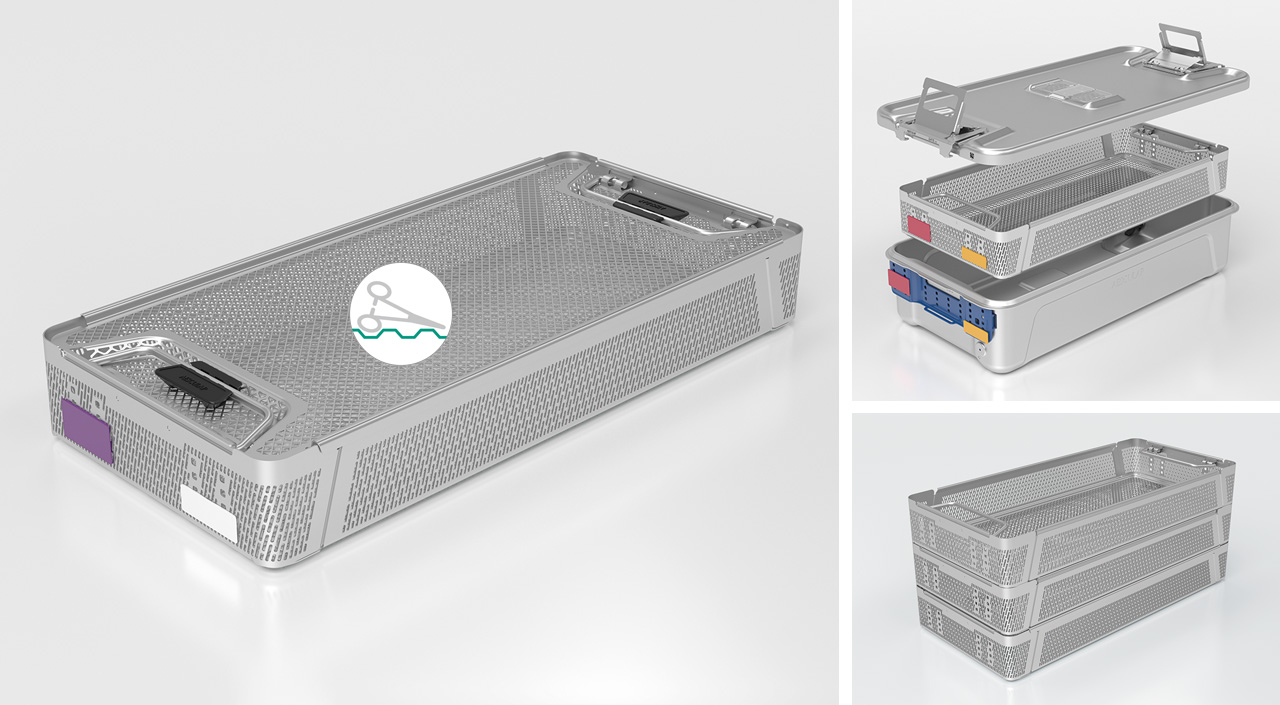 Stanovuje nové štandardy kvality pri príprave sterilných lekárskych nástrojov s dôrazom na spoľahlivú bezpečnosť a pohodlnú manipuláciu. Umožňuje štandardizovať, kontrolovať a dokumentovať celý proces dodávky a likvidácie sterilných materiálov – od skladovania a transportu cez ľahké dodanie na operačnú sálu až po bezpečnú likvidáciu.
